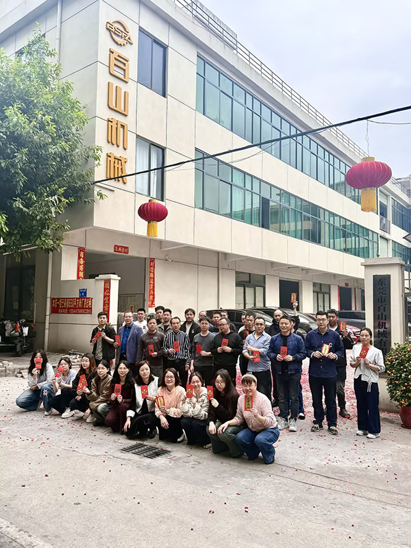 开工吉时已至,喜庆的鞭炮声划破长空,寓意着百山机械 2026 年红红火火、业绩长虹。在全体员工的共同见证下,公司领导共同按下开工启动键,宣告东莞市百山机械有限公司 2026 年正式开工!