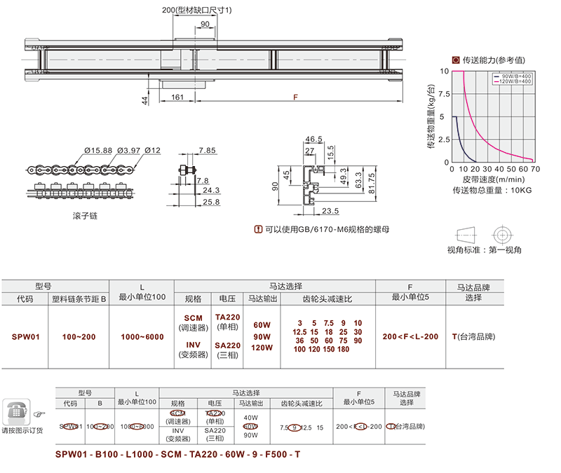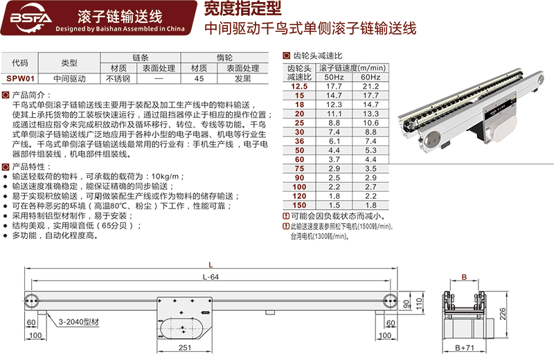 SPW01 千鸟式单侧滚子链同步带输送机精密传送带自动化东莞工厂家流水线