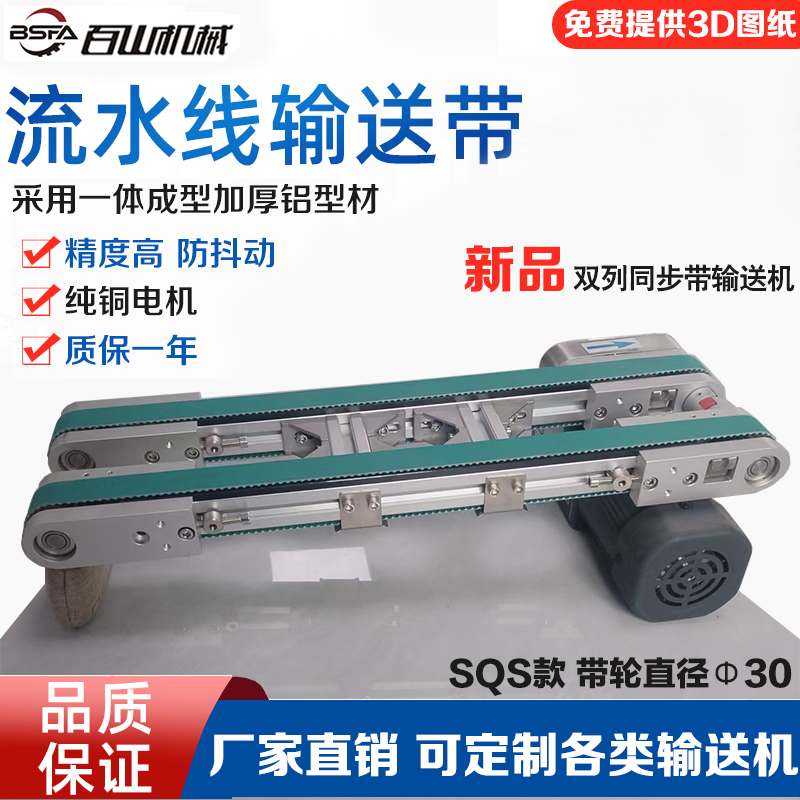 SQS01 双列并排同步带小型输送机流水线传送带运输带可定制生产线长宽度